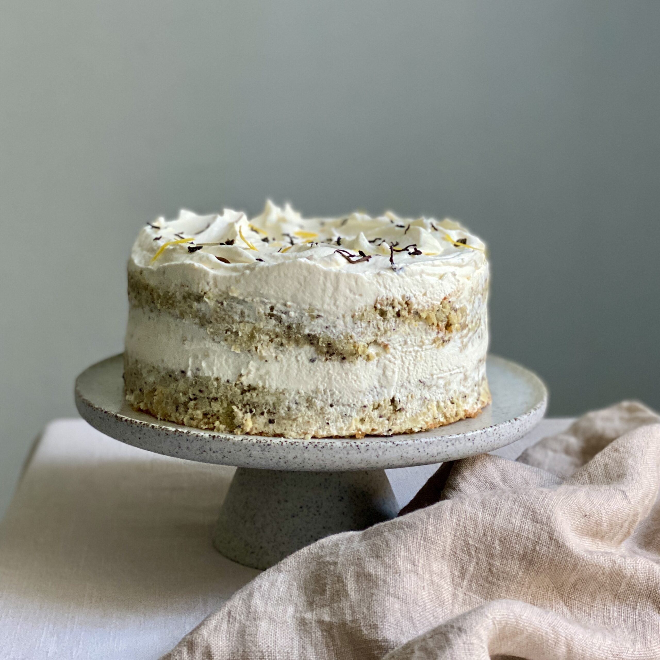 London Fog Tea-Torte (glutenfrei) ☁️ Mit Vanillesirup getränkte Earl-Grey Tee Mandelböden treffen auf eine luftige Frischkäsecreme. Mein Lieblingsgetränk „London Fog Tea“ aus Vancouver nun in Tortenform 😍